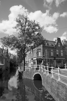 Using Editing tools like Photoshop, you can convert the image to a greyscale but this may not give you the effects you want. The colour image of a Delft canal below was converted to B/W by changing the Mode to Grayscale in Photoshop CS.